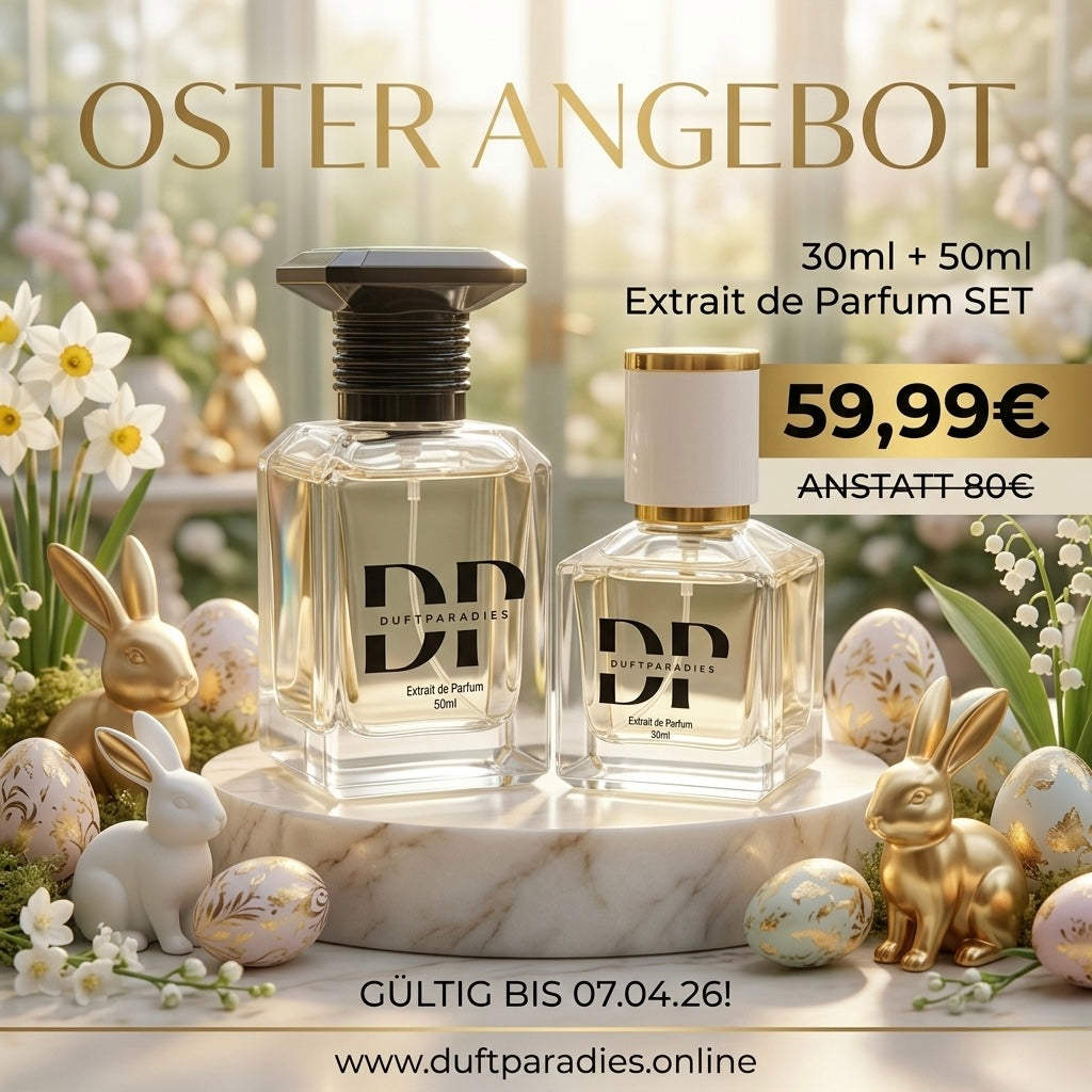 Sichere dir Frühlingsgefühle! Bei Duftparadies feiern wir Ostern mit einem unschlagbaren Bundle für alle Parfüm-Liebhaber.
